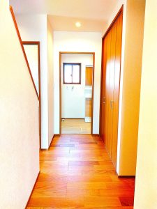 廊下に収納も2つ作り、片付けしやすい作りになっています。