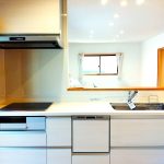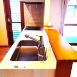 キッチンからは、リビングが見渡せ、勝手口もあり、